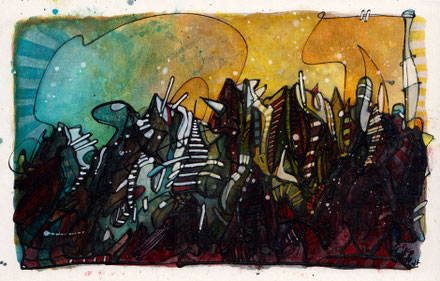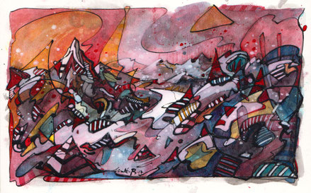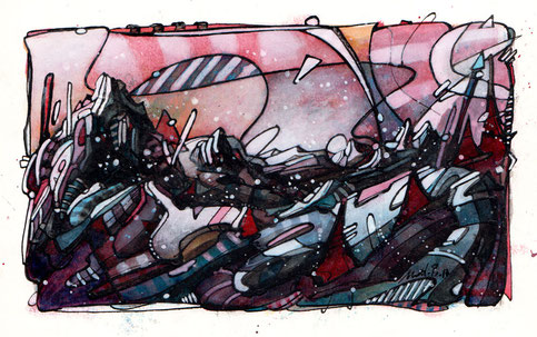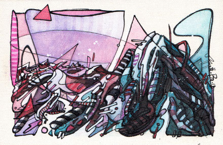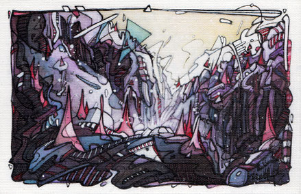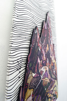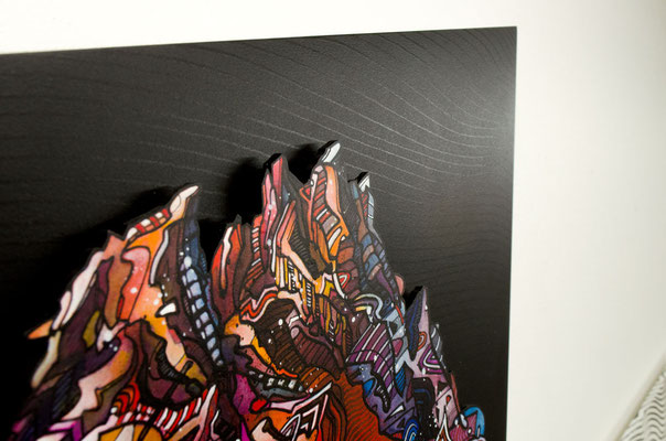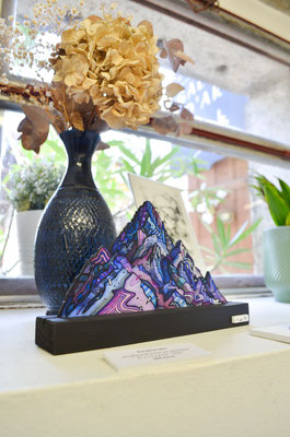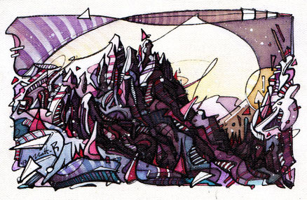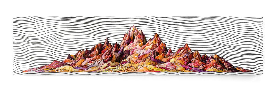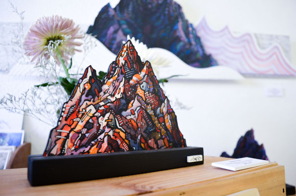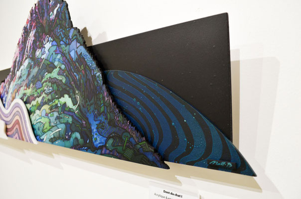 Mes œuvres tentent de traduire ces forces en jeu. Les reliefs et plissements millénaires de la roche sont une source inépuisable d’inspiration. Ils suscitent en moi les motifs du merveilleux. Mes tableaux donnent à voir une montagne vivante et frémissante, à la fois immuable et en perpétuel mouvement. Si les profils tourmentés de l’Himalaya ou des Alpes m’ont souvent tenu lieu de modèles, mes créations s’inscrivent résolument dans l’imaginaire. À contrepied du réalisme, elles rendent compte d’une nature puissante et onirique. Cette montagne qui s’impose au regard tout en demeurant insondable, je souhaite lui rendre un hommage coloré.